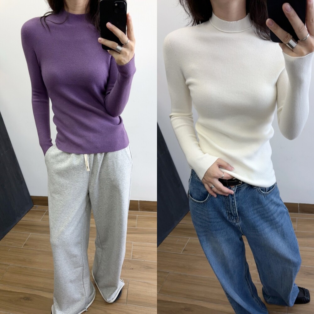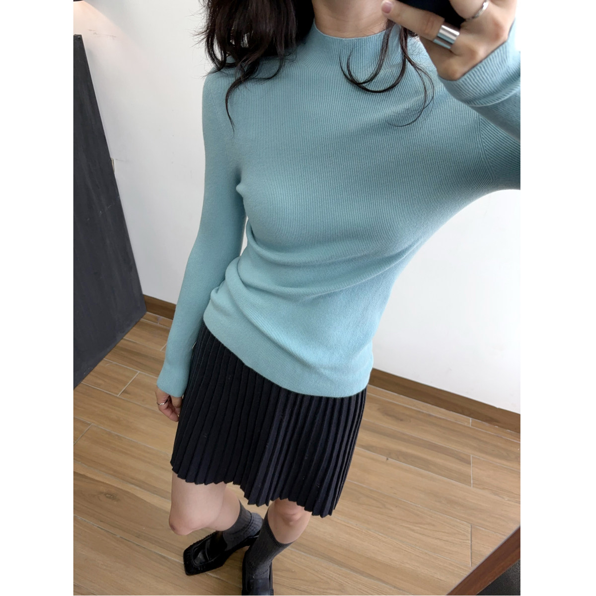 秋冬毛衣女 打底衫 无缝超值走量款 _树莓粉羊毛混纺半高领针织修身