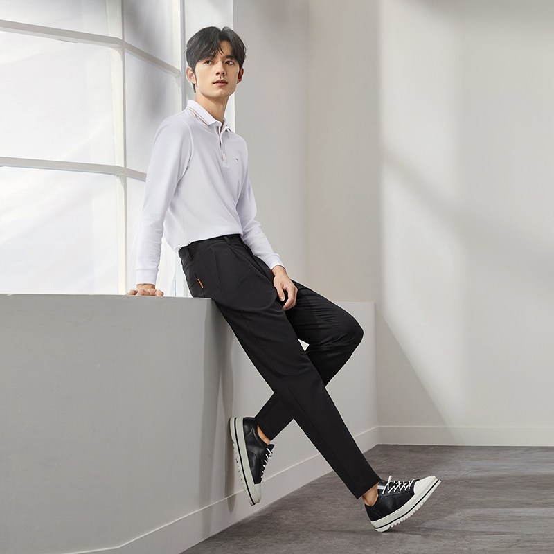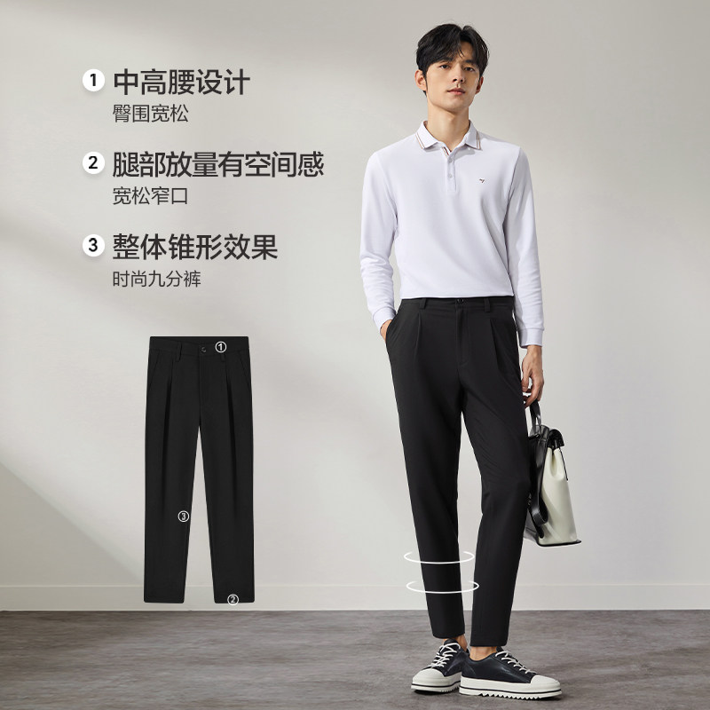新款 时尚 百搭锥形裤 柒牌男装 黑色萝卜裤 男秋季 男士 九分休闲裤