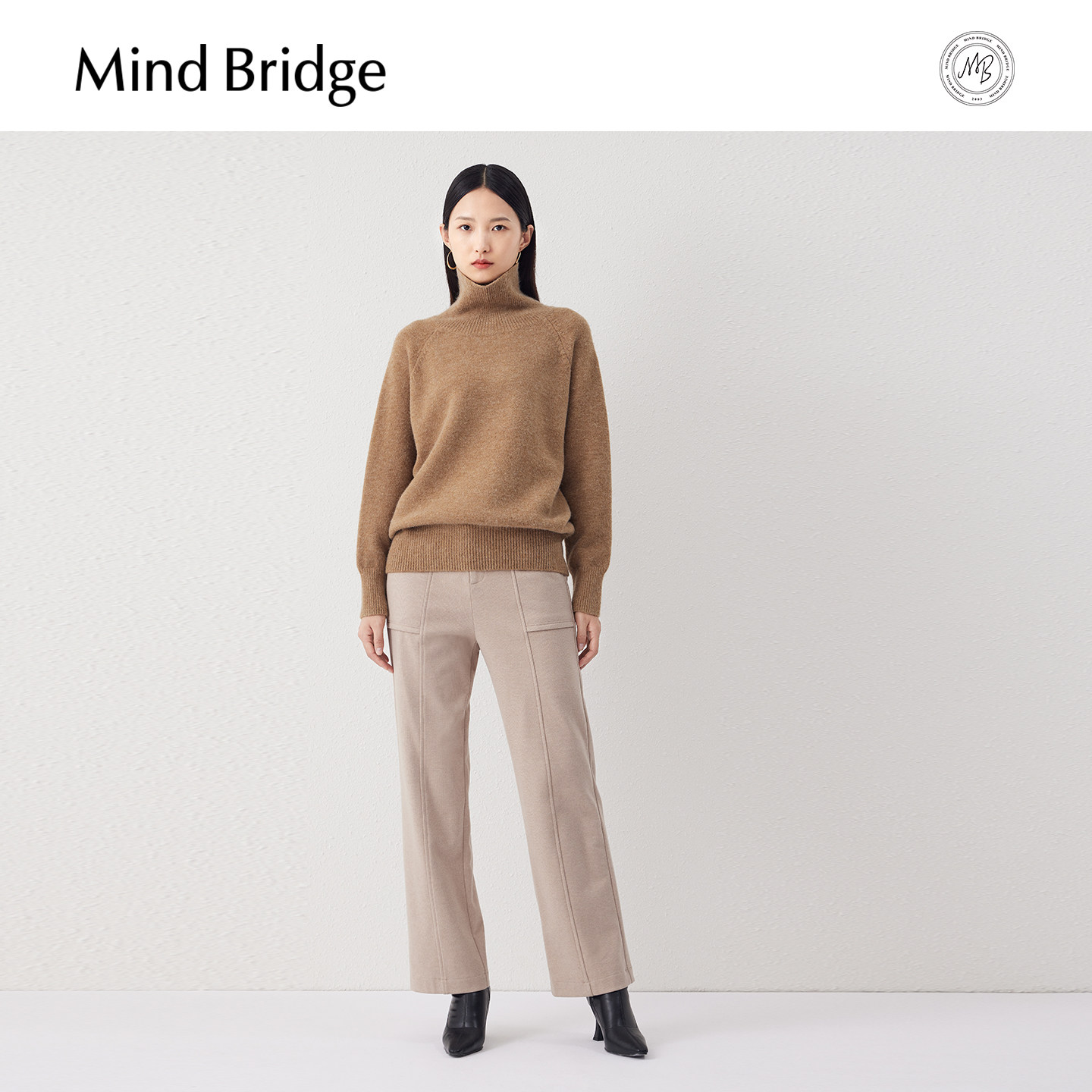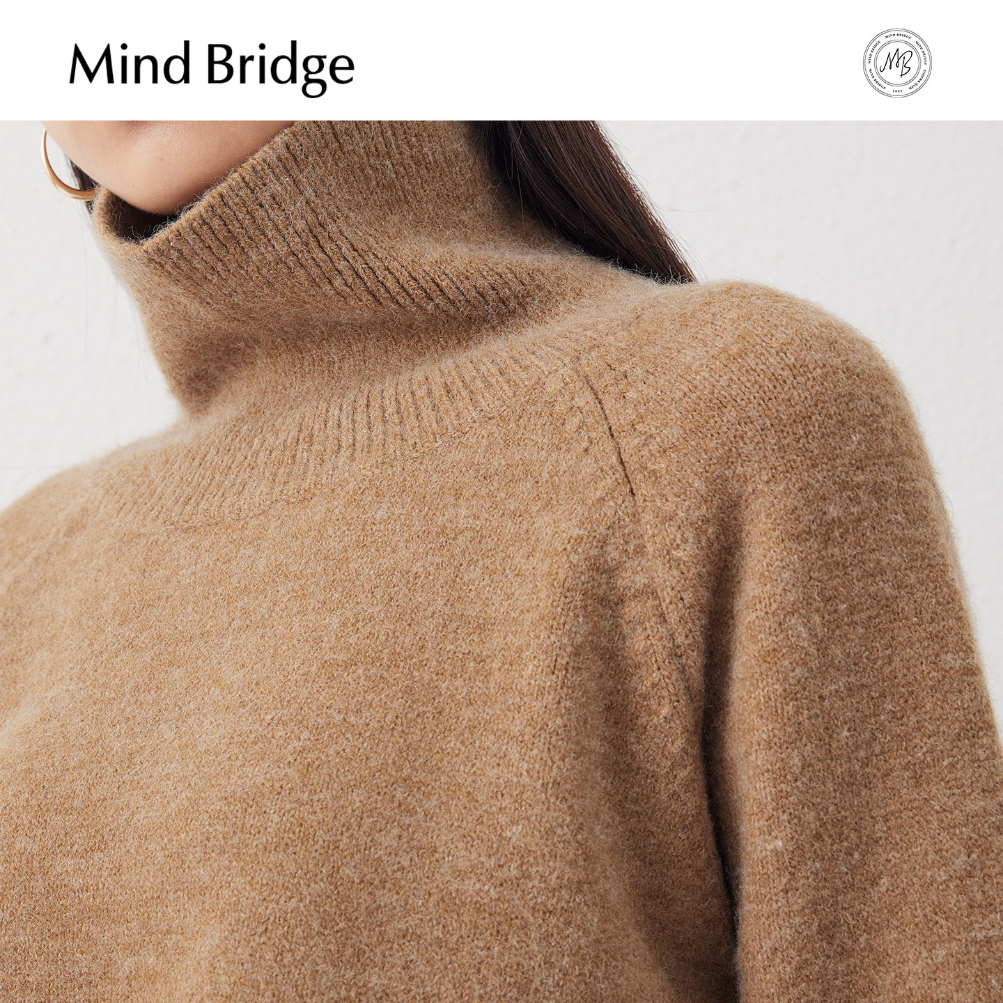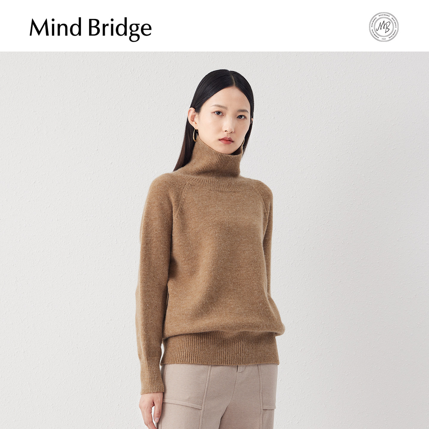 宽松显瘦针织女士纯色上衣 纯色高领毛衣春季 Mind Bridge2026新款