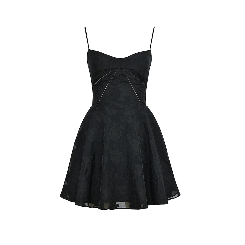 秋冬款 性感束腰黑色花卉蕾丝迷你连衣裙Serenita House