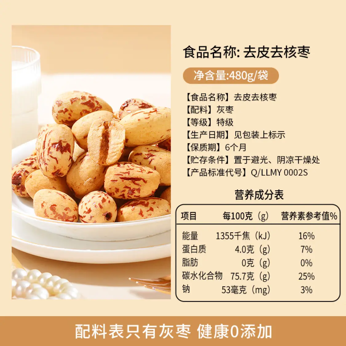 红枣 楼兰蜜语特级去皮去核枣480g 灰枣 家庭分享 蜜饯 16小包独