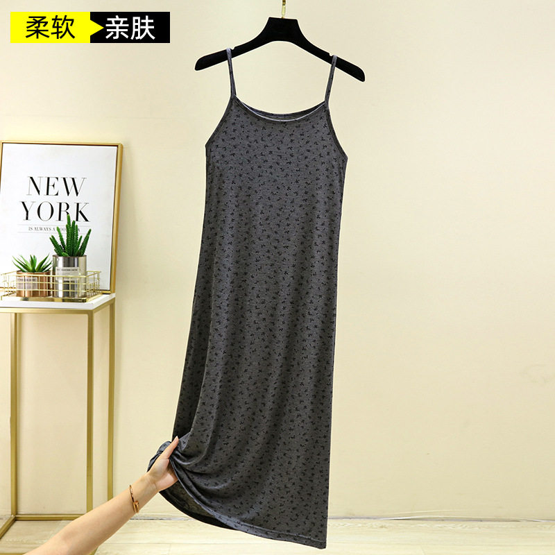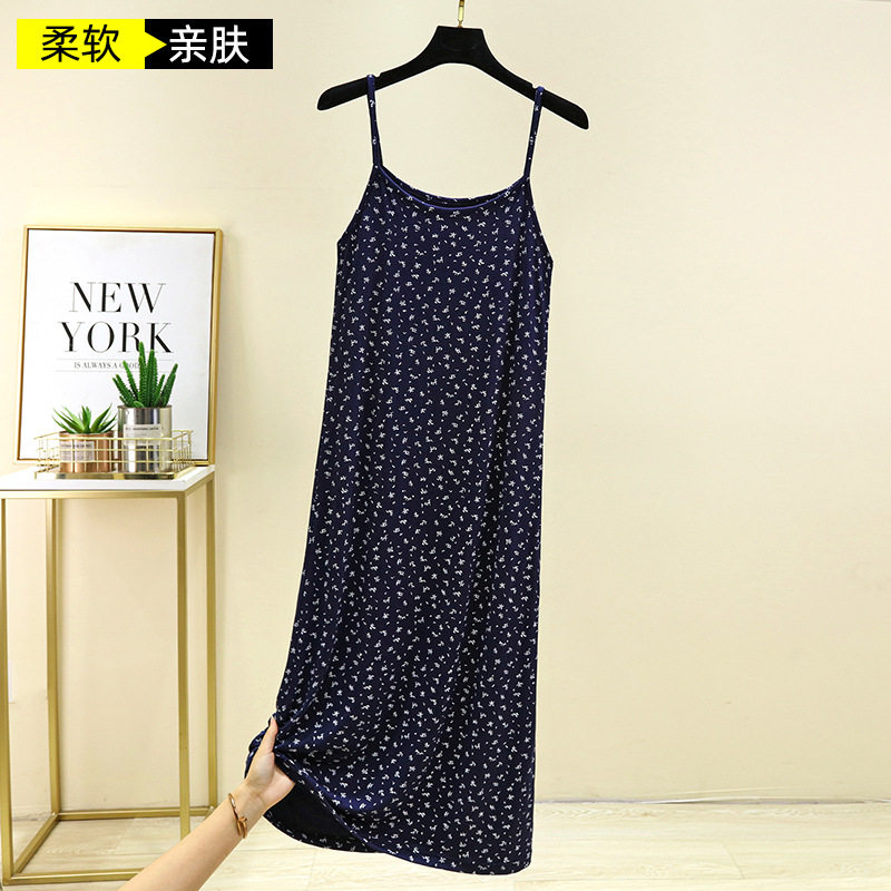 休闲连衣裙 长裙大码 莫代尔女士小花吊带裙宽松居家睡裤 内搭无袖