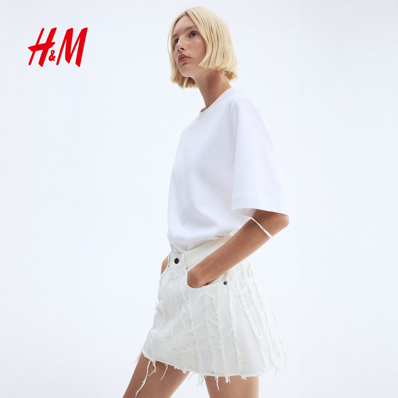 HM春季 磨边牛仔迷你裙1294403 女装