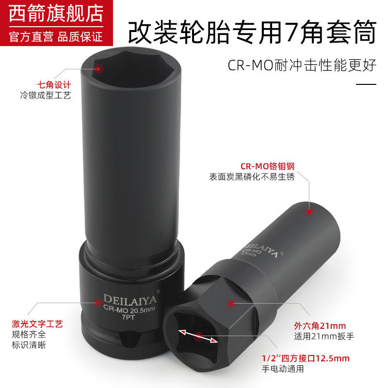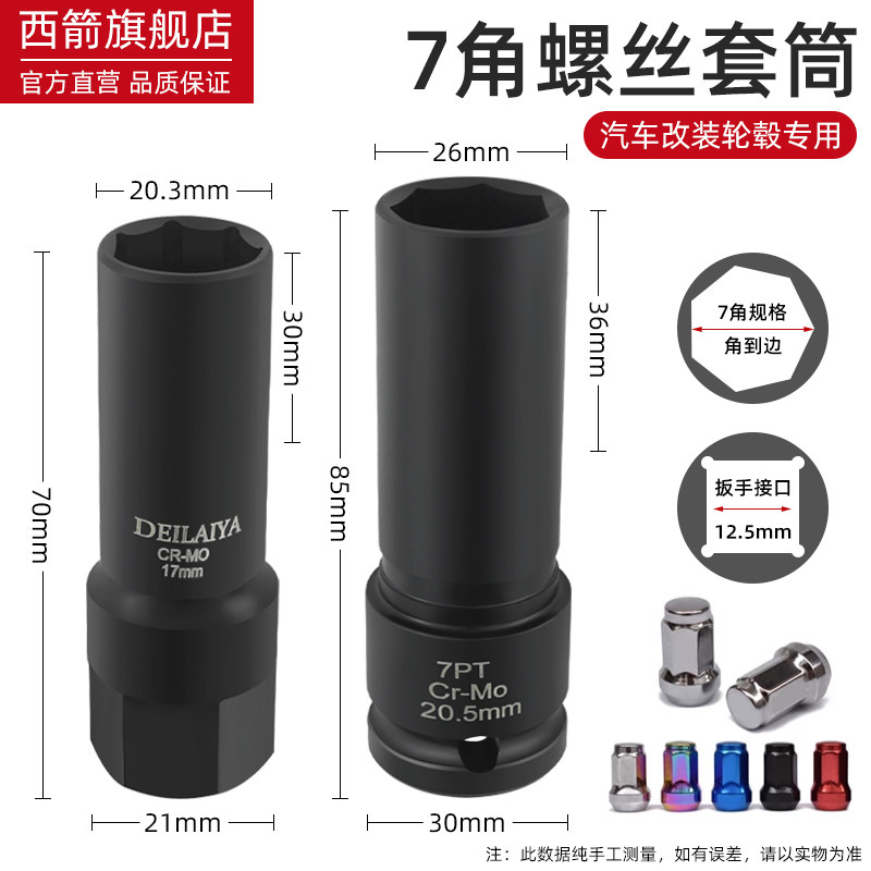 防盗轮毂螺丝内7角轮胎拆卸工具扳手 2汽车外七角星套筒17MM改装