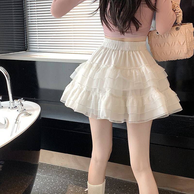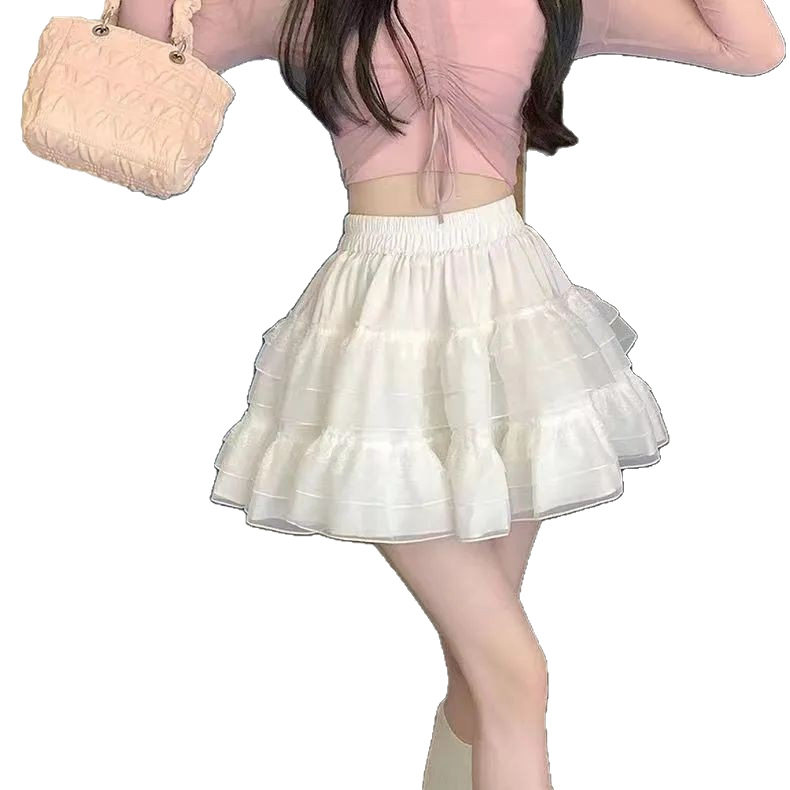 法式 网纱短裙芭蕾风白色蛋糕短裙可爱 蓬蓬裙蕾丝半身裙女夏季