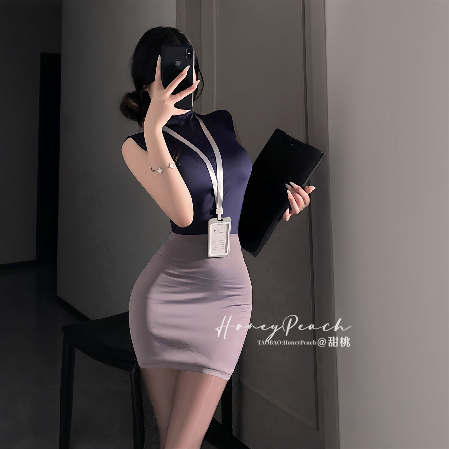喵:紫色御姐风迷人妩媚性感网纱透视长裙修身 睡裙女火辣约会睡裙