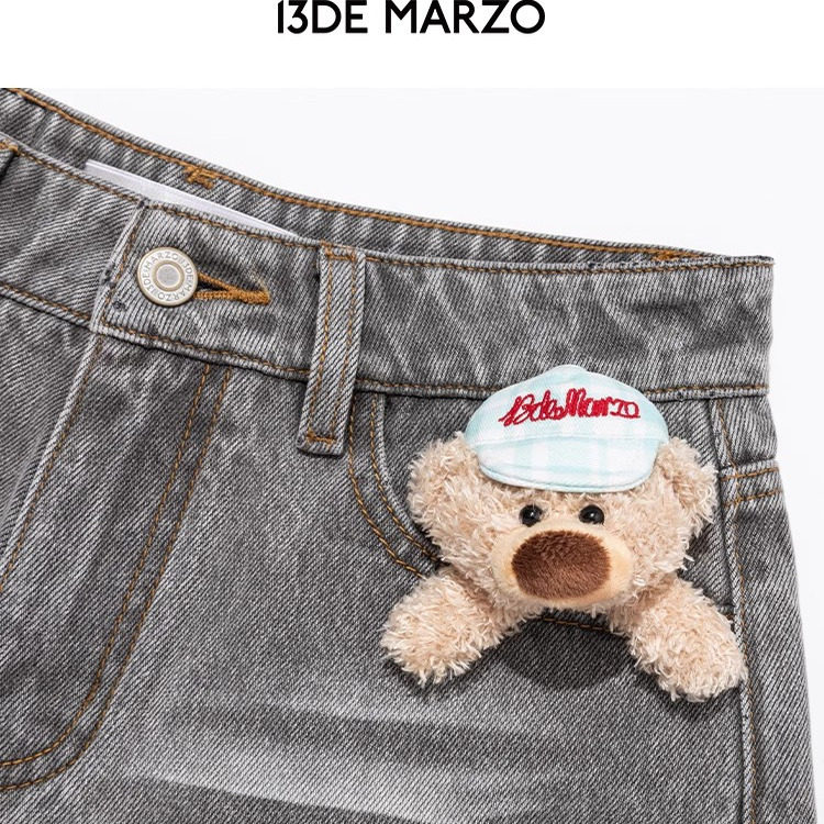 宽松直筒 弯刀复古男女同款 秋冬加绒加厚美式 cleanfit竹节纹牛仔裤