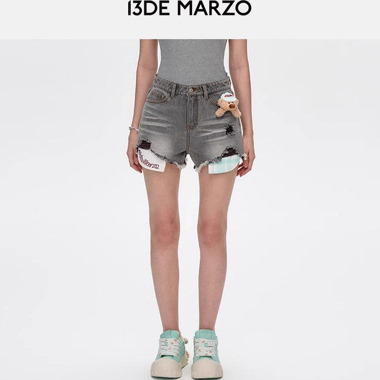 小个子a字阔腿热裤 高腰牛仔短裤 宽松大码 薄2025新款 设计感 女夏季
