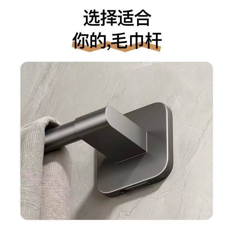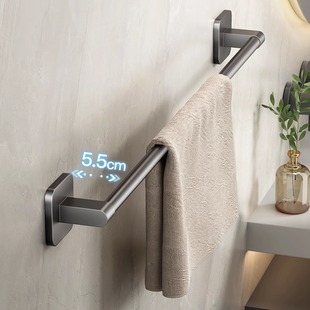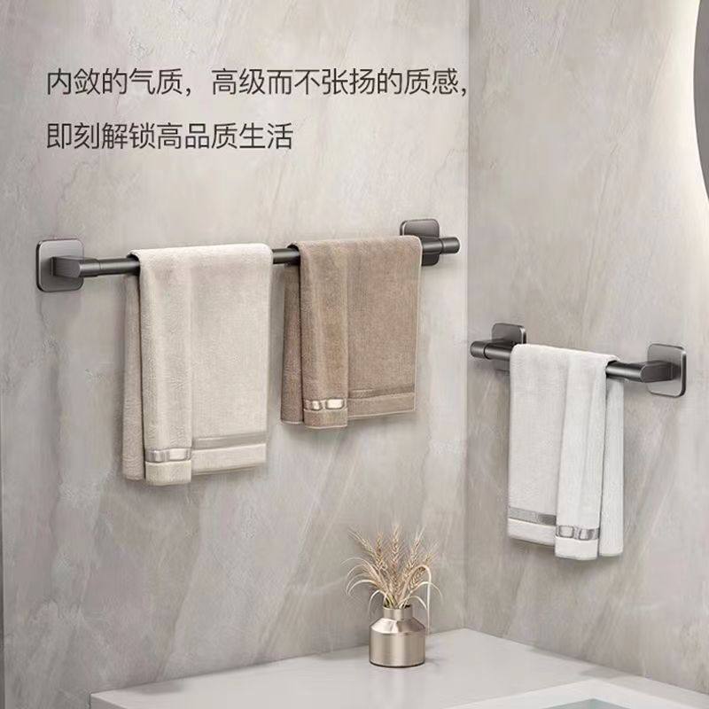 潜水艇枪灰毛巾架卫生间免打孔浴室置物架高端可折叠挂浴巾架套装