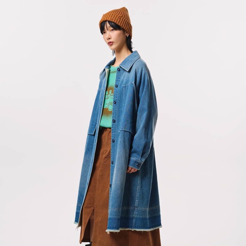 MOVEUP幻走2023秋季 .FUN系列多口袋洗水毛边设计师牛仔外套女 新款