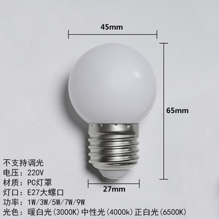 家用超亮照明节能LED灯泡1W3瓦5瓦7W9WE27螺口暖白E14小口圆球泡