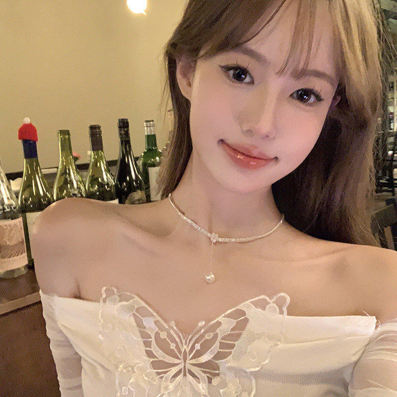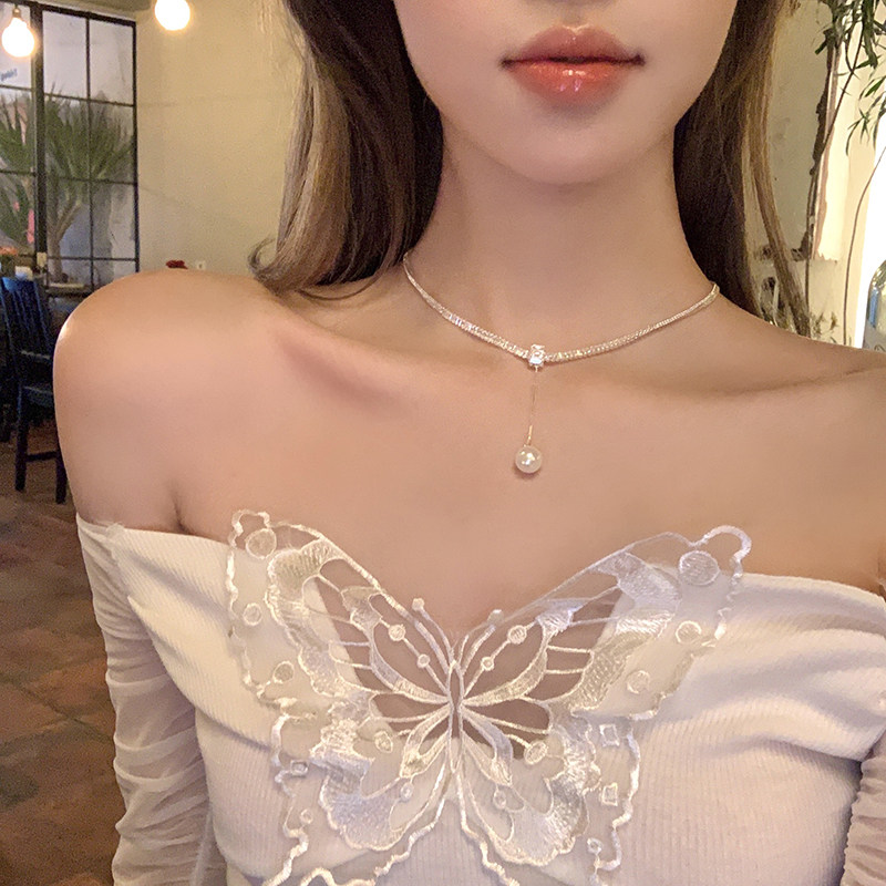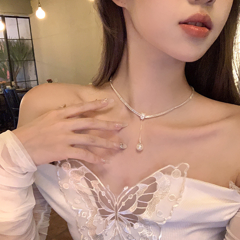 高级感轻奢小众气质项链 锆石珍珠流苏choker脖颈链女款 蜜桃茶