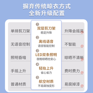 电动晾衣架烘干自动接已接入智能APP语音遥壁控升降阳台双排剪刀