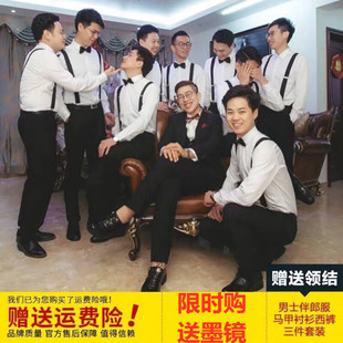 三件套职业正装 伴郎服套装 西装 男士 工作服新郎婚礼西服 结婚兄弟装