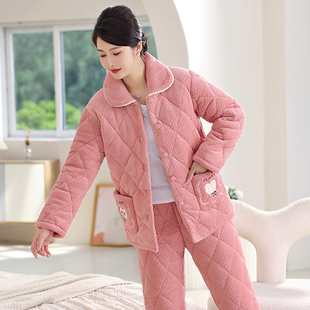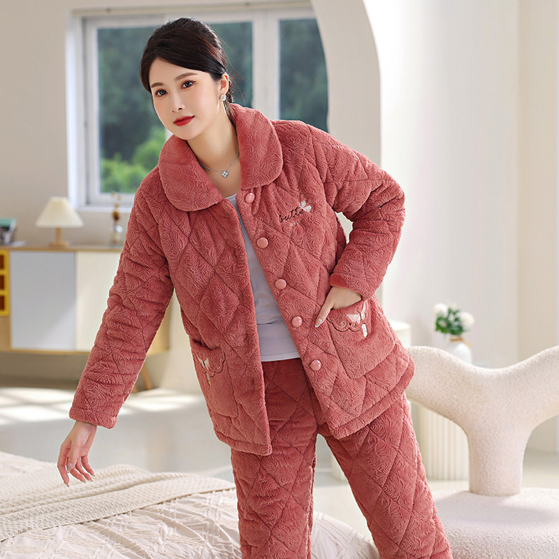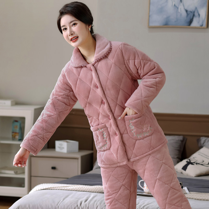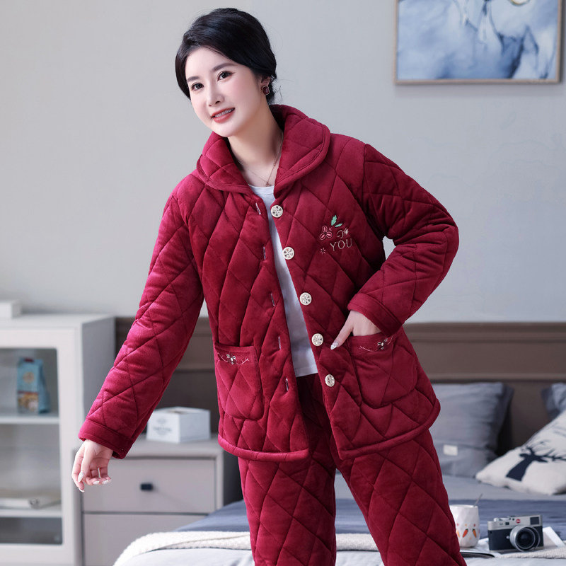 中年妈妈冬季 2025年新款 夹棉中老年人法兰绒女冬 珊瑚绒 加厚睡衣