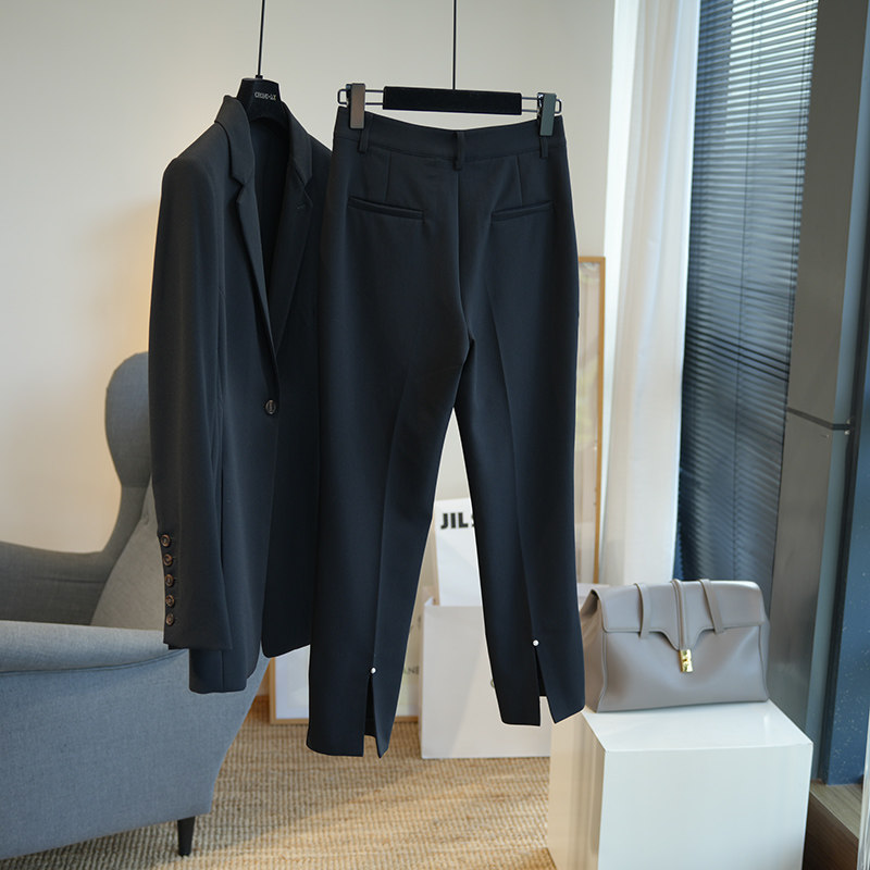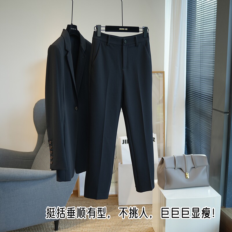 裤 女春高腰显瘦九分烟管西装 768E 后开叉气质通勤休闲西裤 虫小小