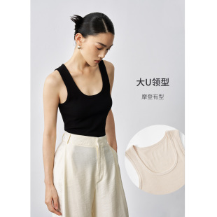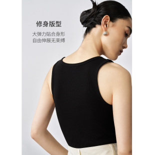 TINGE贴己黑色吊带背心女2024新款 针织外穿上衣 基础方领棉质修身