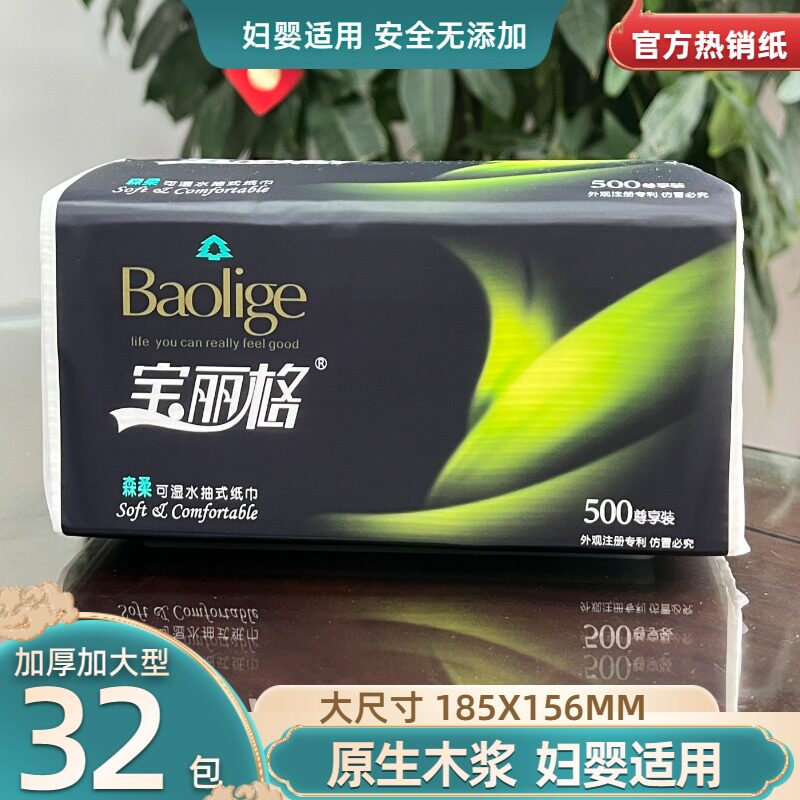 宝丽格抽纸森柔大包耐用亲肤可湿水面巾纸卫生纸擦手纸家用抽取式