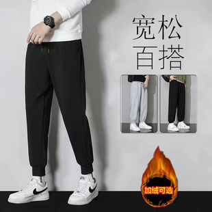 长裤 灰色抽绳束脚弯刀卫裤 女秋冬加绒加厚高腰百搭宽松阔腿休闲裤