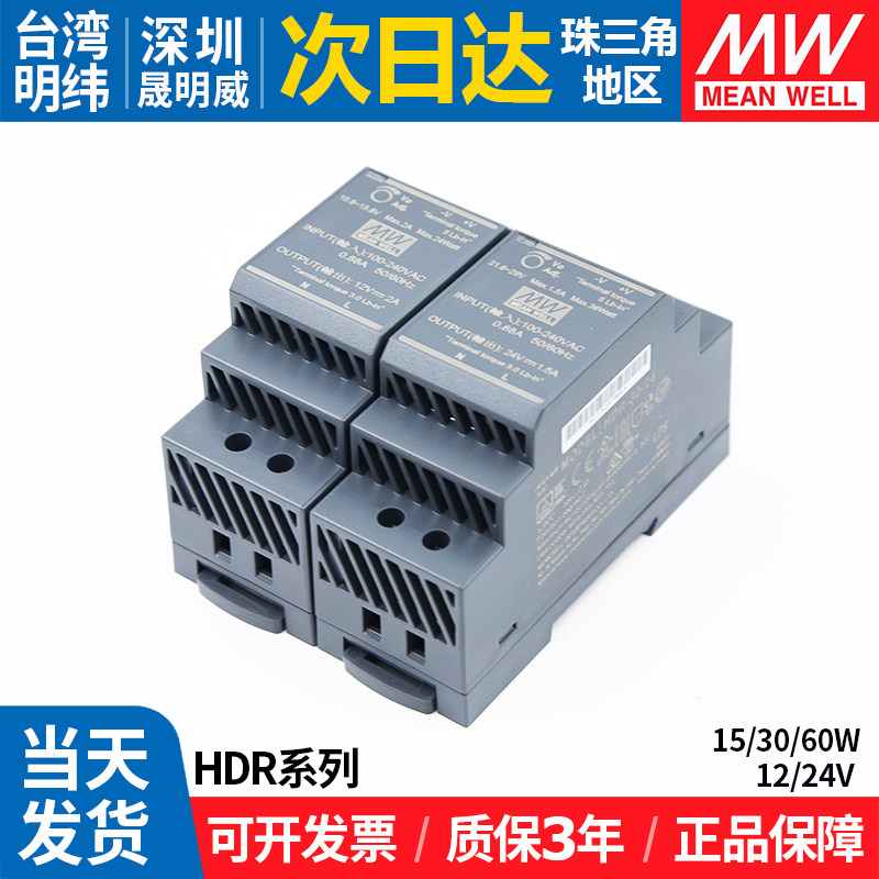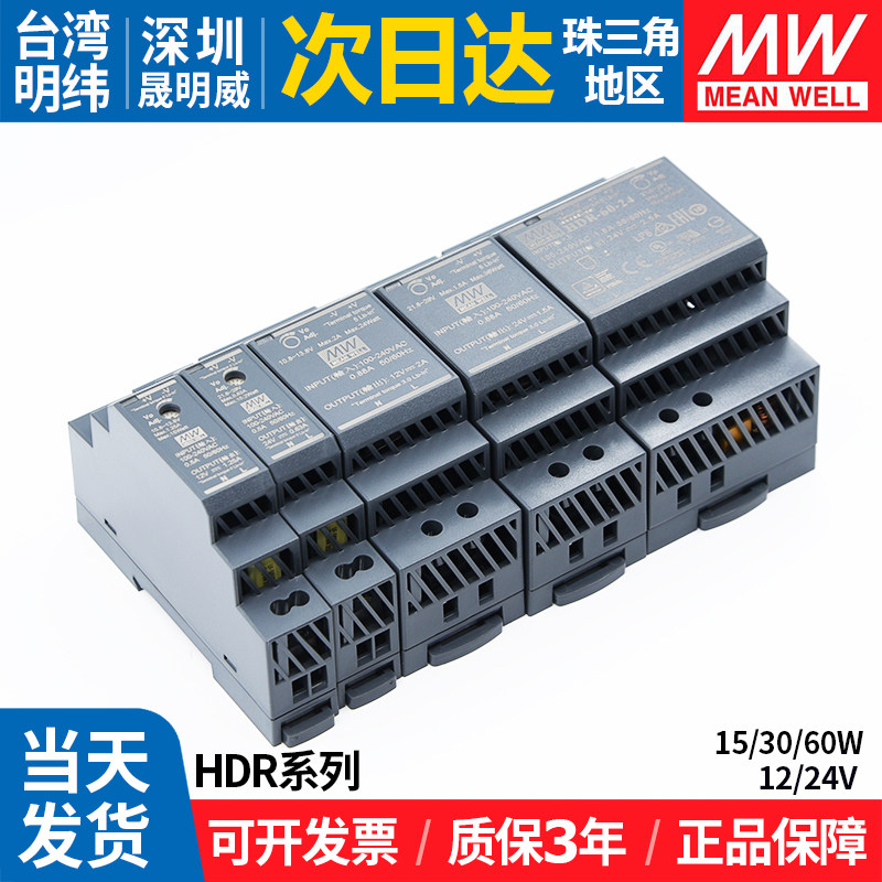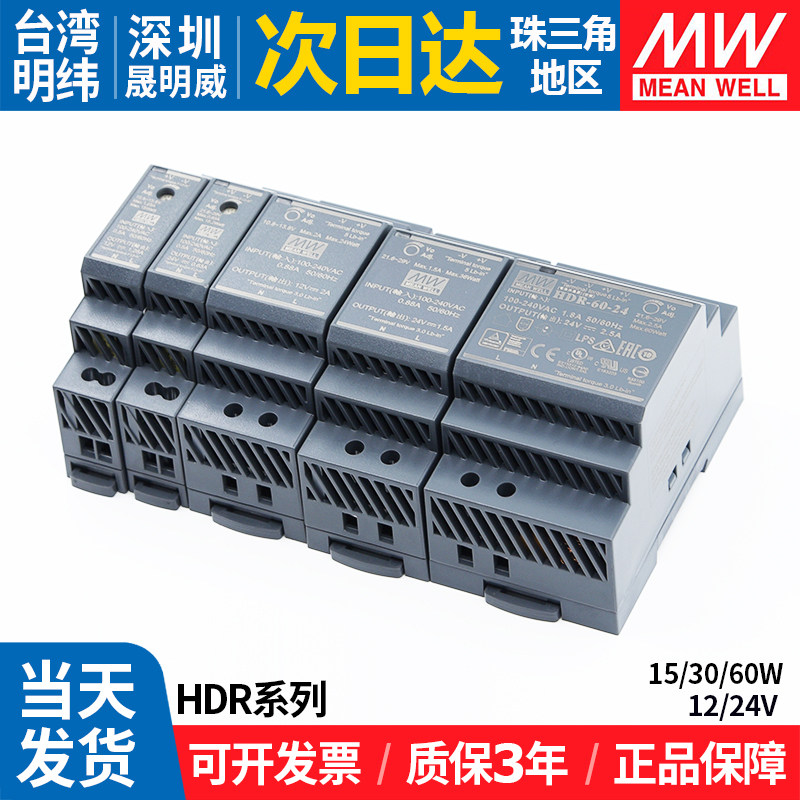 100台湾明纬12V N导轨型100W直流开关电源 15V 48V 24V HDR