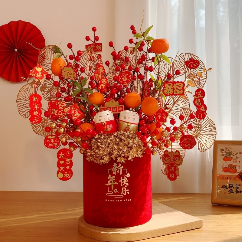 仿真梅花桃花枝摆件客厅干花盆景腊梅摆设花盆栽客厅室内装 饰假花