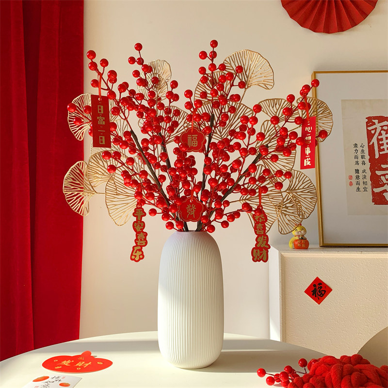 高级感栾树灯笼果仿真花客厅高端餐桌装 饰摆件假花仿生灯笼花中式