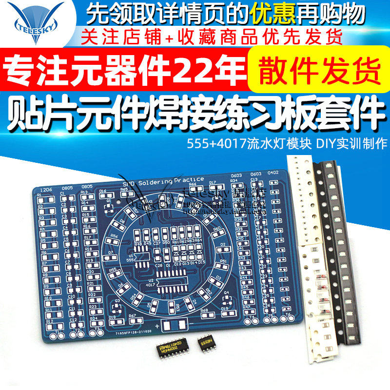 4017流水灯模块 贴片元 555 流水灯套件 DIY实训制作 件焊接练习板