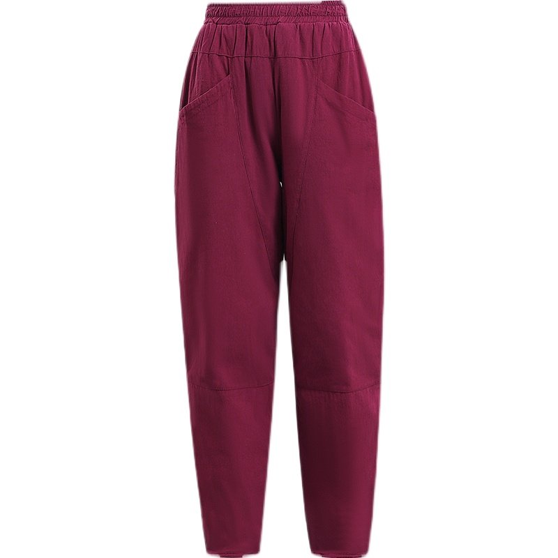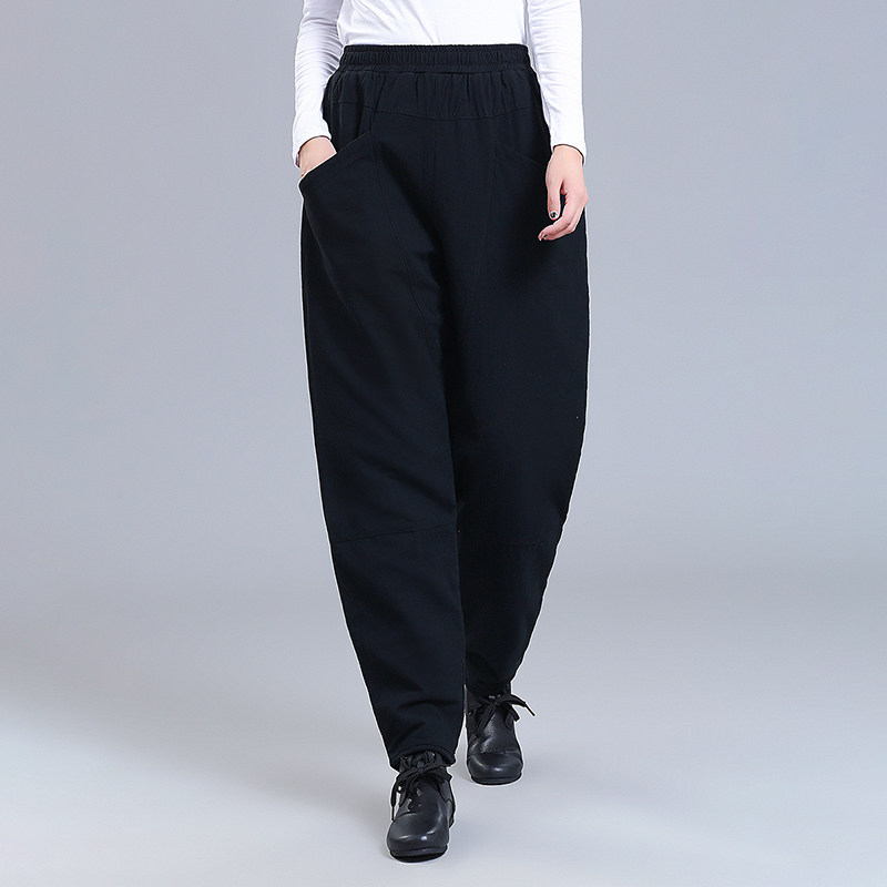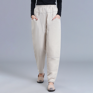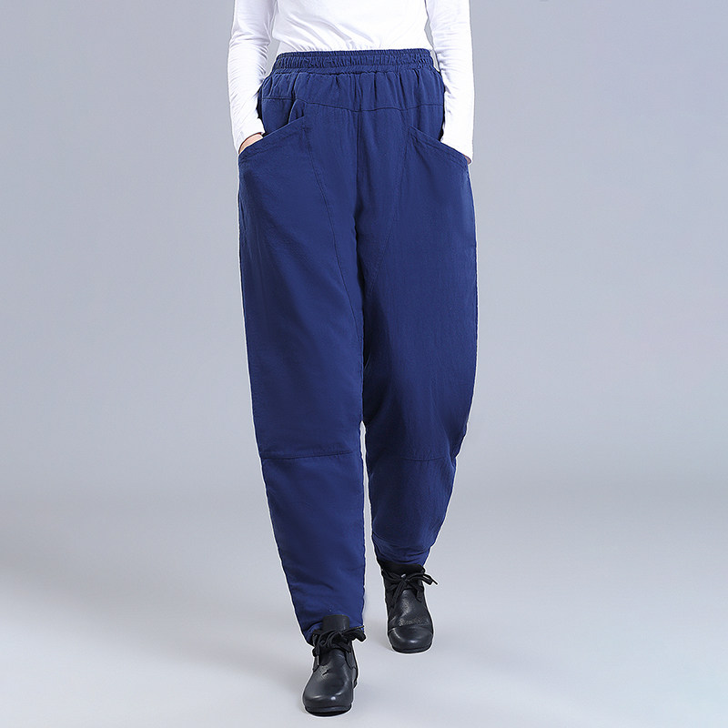 棉裤 加厚夹棉灯笼裤 中式 宽松复古民族风棉麻裤 女冬外穿 休闲萝卜裤
