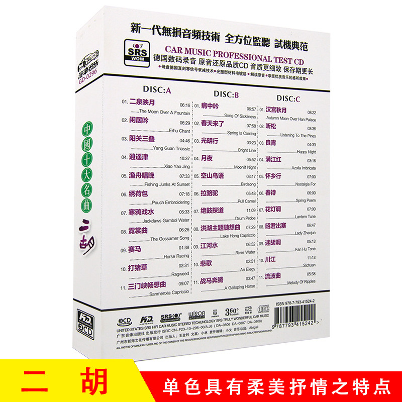 中国民族音乐二胡曲 黑胶唱片汽车载cd光盘碟片 器乐曲背景纯音乐