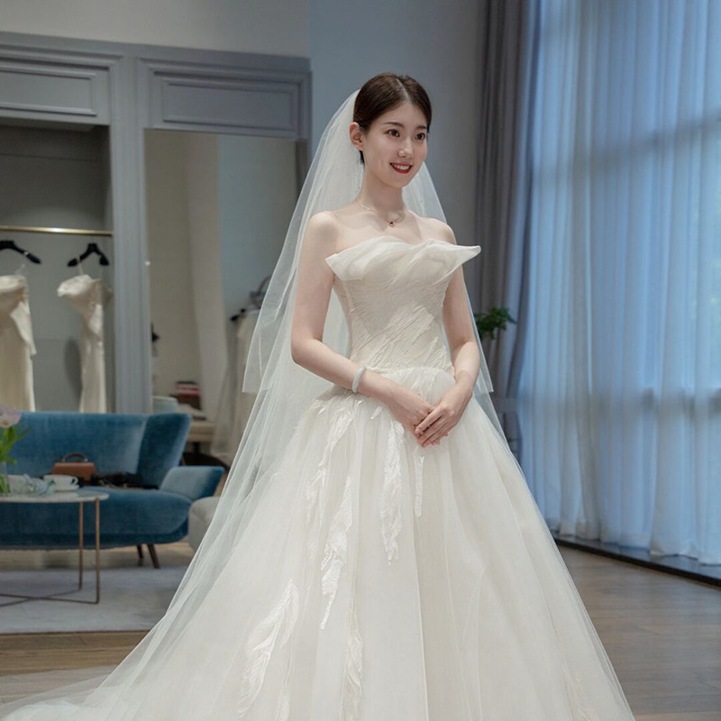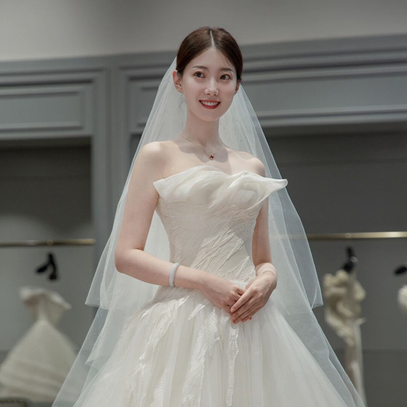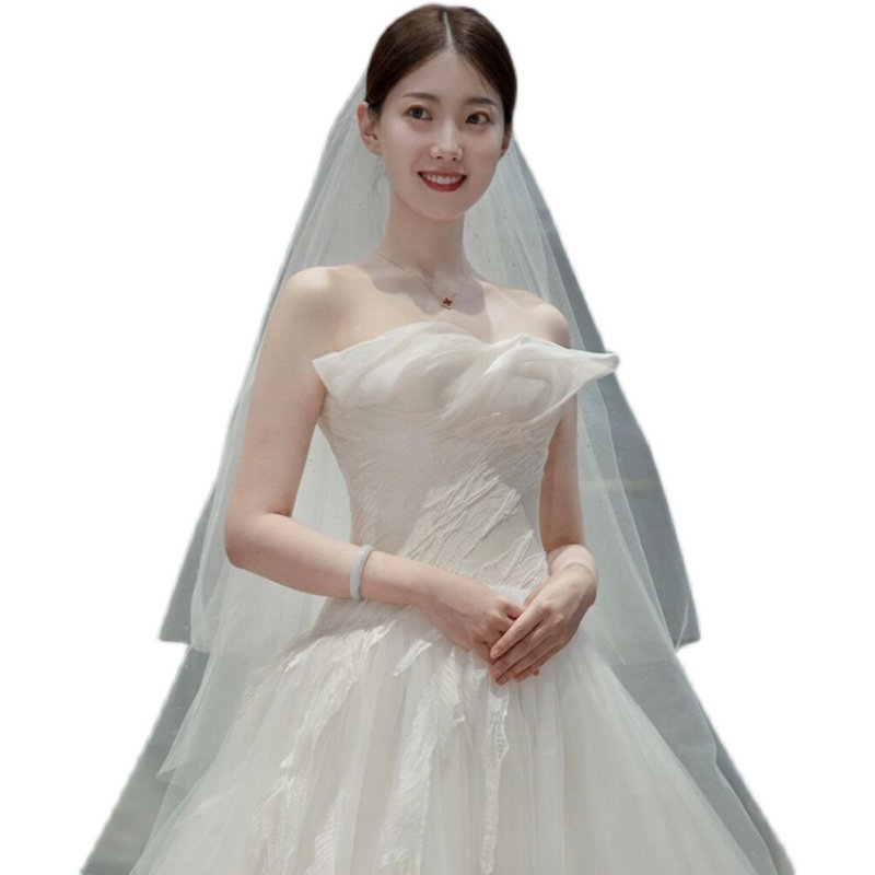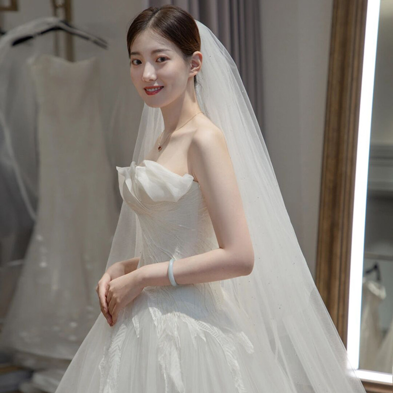 头纱新娘主婚纱婚礼白色长款 拖尾头纱头饰超仙森系复古拍照道具