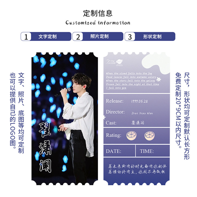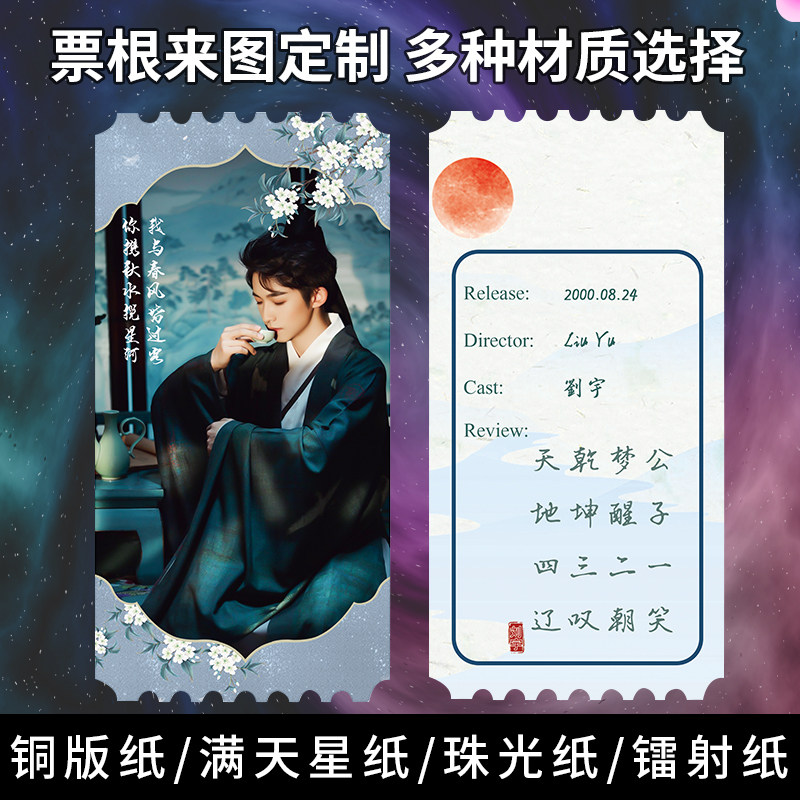 票根定制镭射印刷门票满天星珠光纸应援模切来图定制硬质小卡片