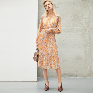中长款 颜域时尚 女复古气质收腰长袖 2026年新款 裙子 碎花连衣裙春季
