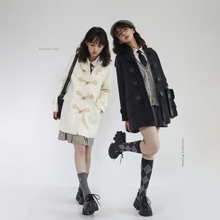 咸鱼衣橱 50%羊毛学院风牛角扣大衣女秋冬小个子加绒加厚毛呢外套