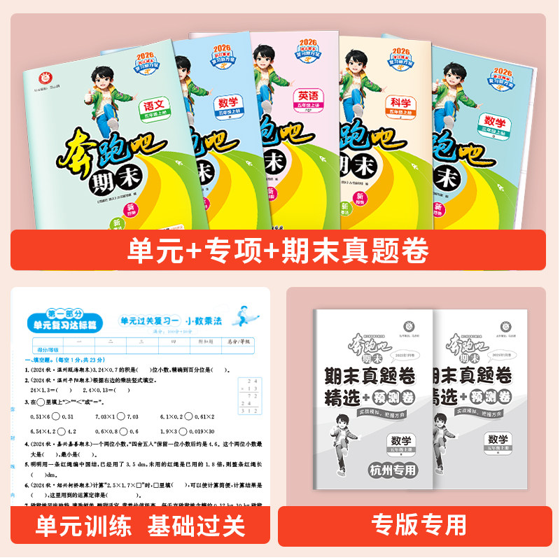 期末总复习冲刺一百分练习册 奔跑吧期末小学一二三四五六年级上下册全套科学语文数学英语人教北师版 官方直营 浙江专用2025秋新版