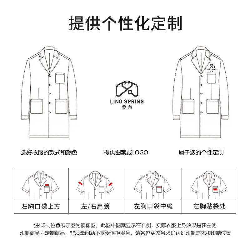 菱泉纯棉实验服医学生化学生物白大褂实验室定制白色长袖 男医生