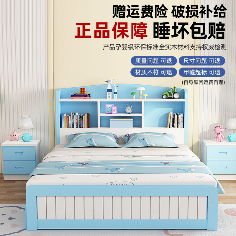 儿童实木床现代简约1.5m女孩公主床经济型多功能带书架男孩单人床