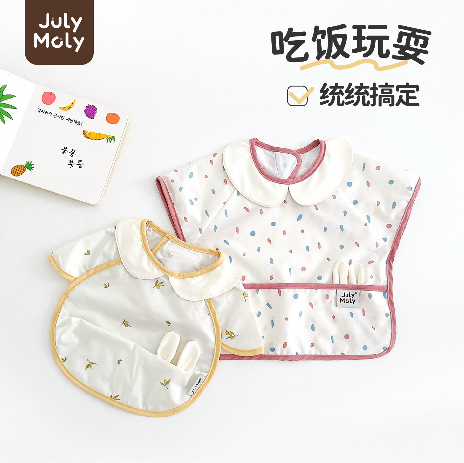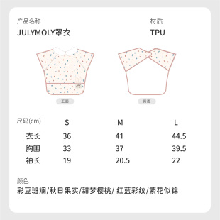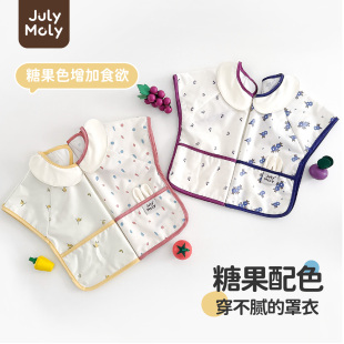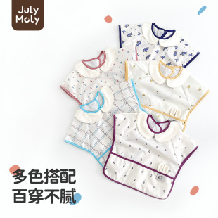 JulyMoly宝宝防水罩衣防污渍易清洗吃饭围兜反穿衣轻薄透气款