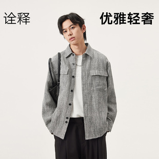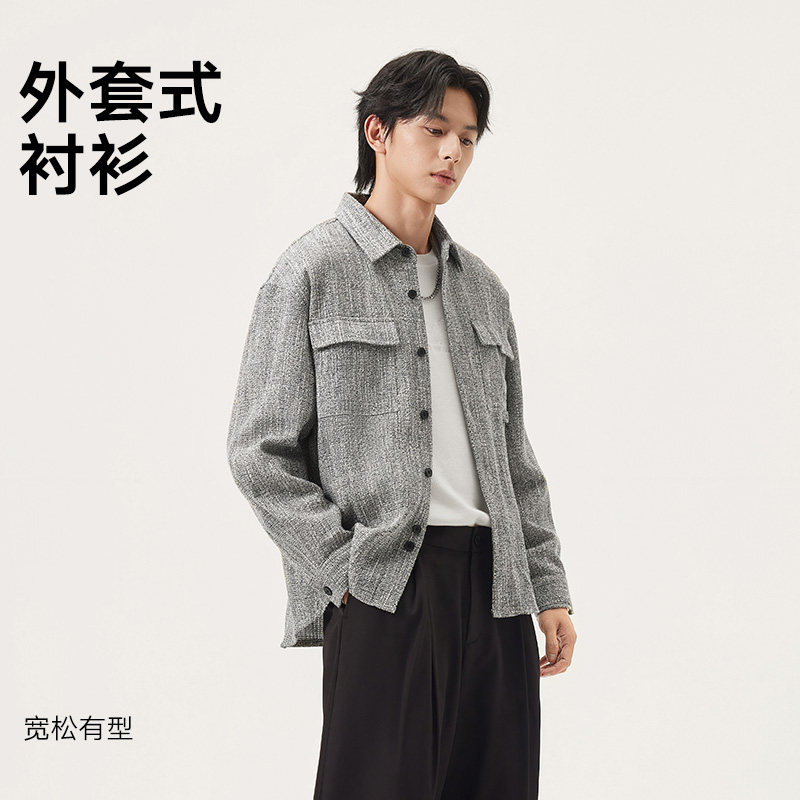 灰色小香风肌理潮流时尚 25秋新品 衬衫 外套宽松 式 gxg.jeans男装