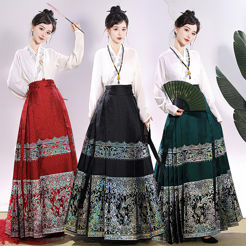 国风日常上班穿织锦古装 马面裙女曹县汉服套装 中式 春秋季 2024新款