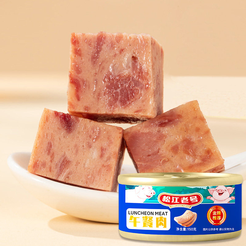 松江老号午餐肉罐头150g 3罐即食大块肉丝三明治野餐露营火锅速食