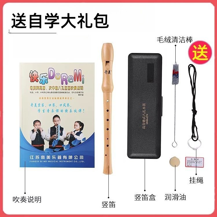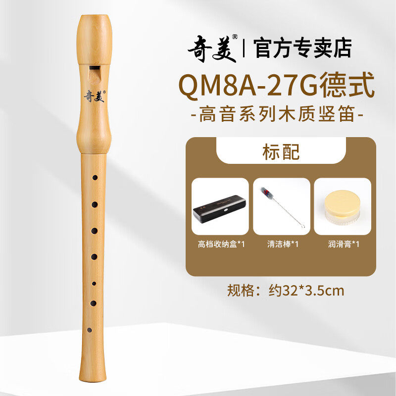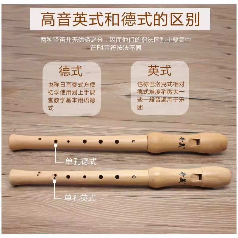 奇美竖笛6孔8孔小学生木笛c调高音英式 27G中音f调笛子 八孔26B德式
