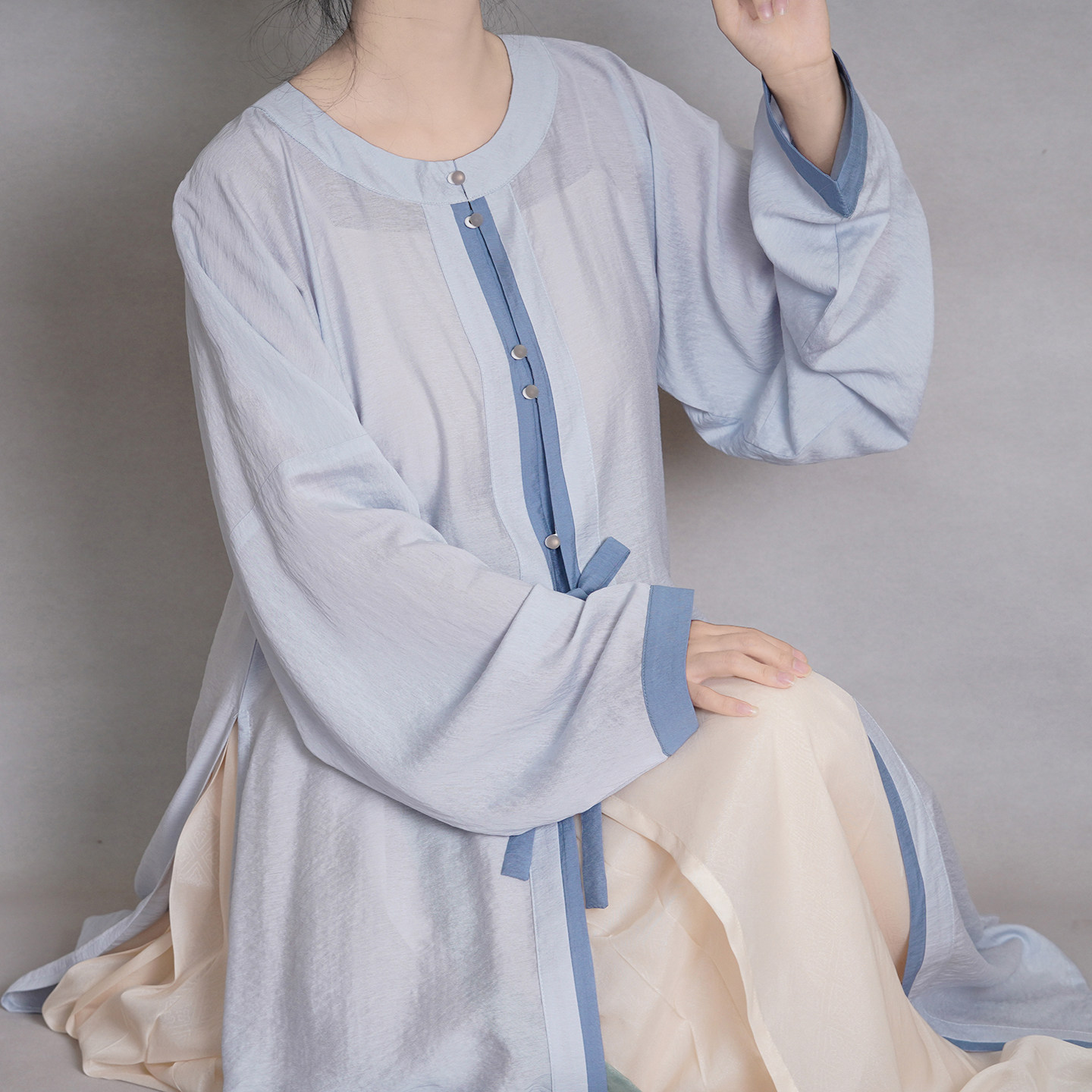 日常百搭春夏薄款 漫春雪汉服 弓袋袖 明制圆领万历长衫 微月