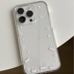 kiki白日梦原创细闪粉星星小兔银河小卡壳kpop追星ins适用苹果16promax 15亚克力透明质感手机壳软壳简约防摔