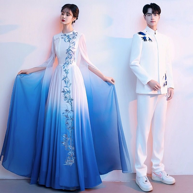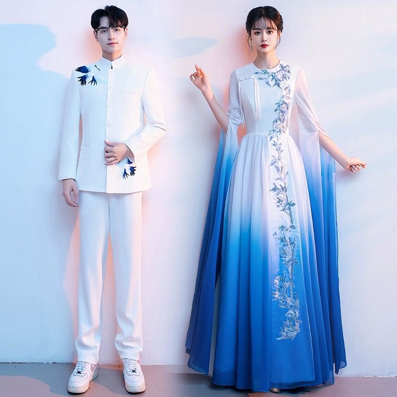 舞台主持人学生古筝演奏琵琶礼服 成人男士 大合唱团中山装 演出服装