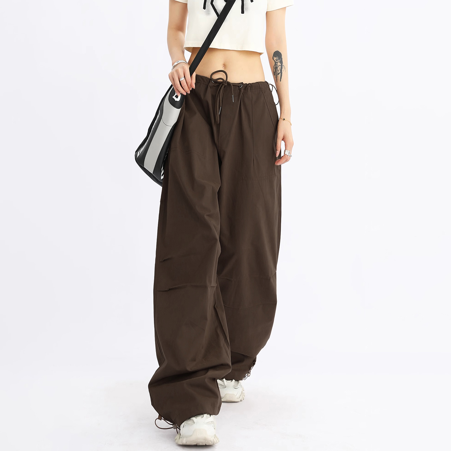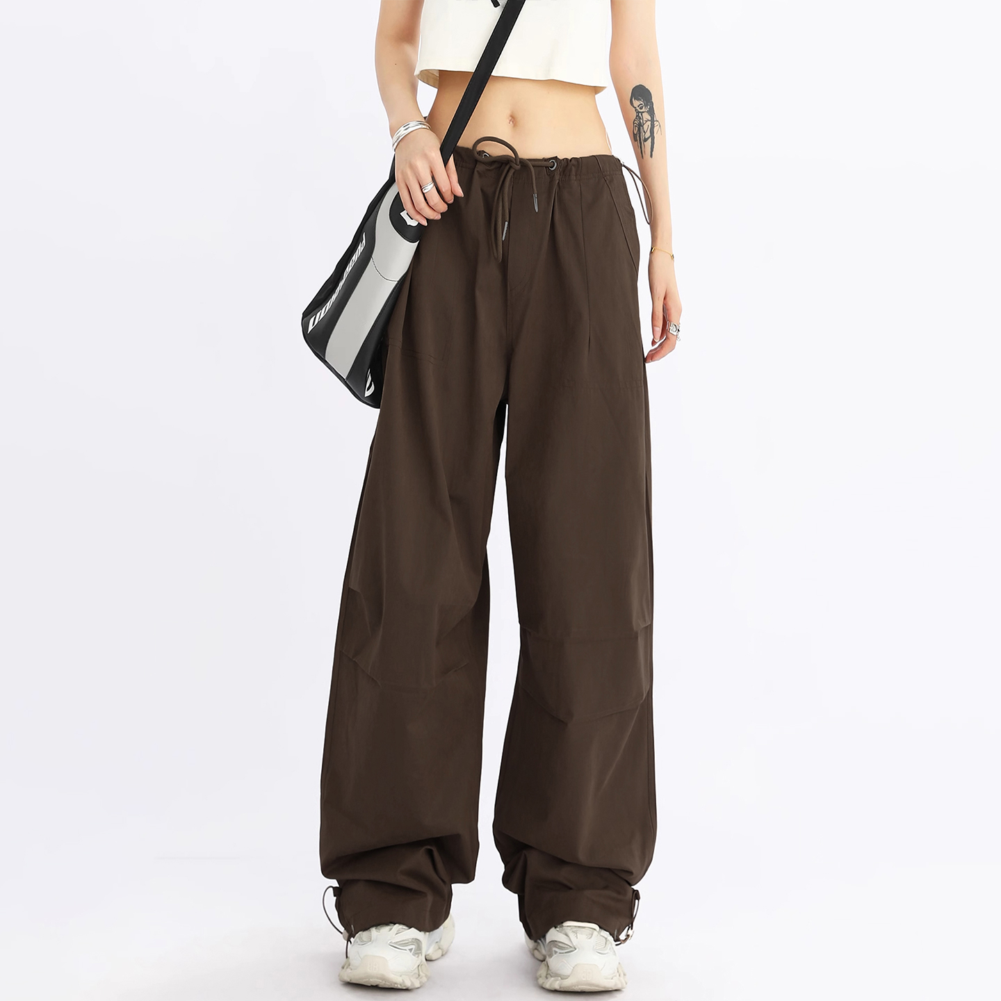 加长拖地阔腿裤 高个子超长咖色速干伞兵工装 2025新款 女春秋爆款 裤
