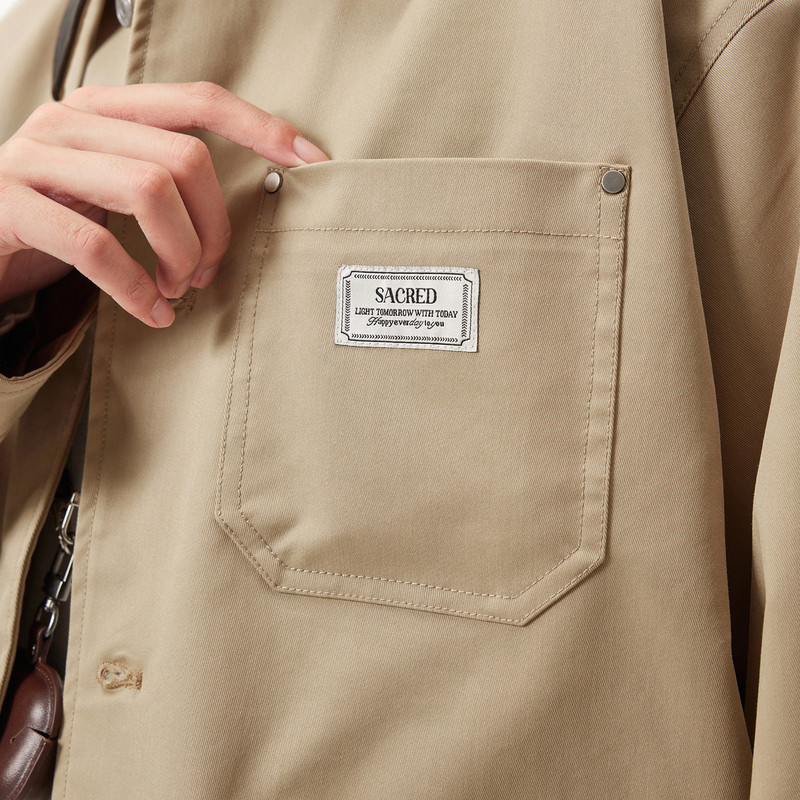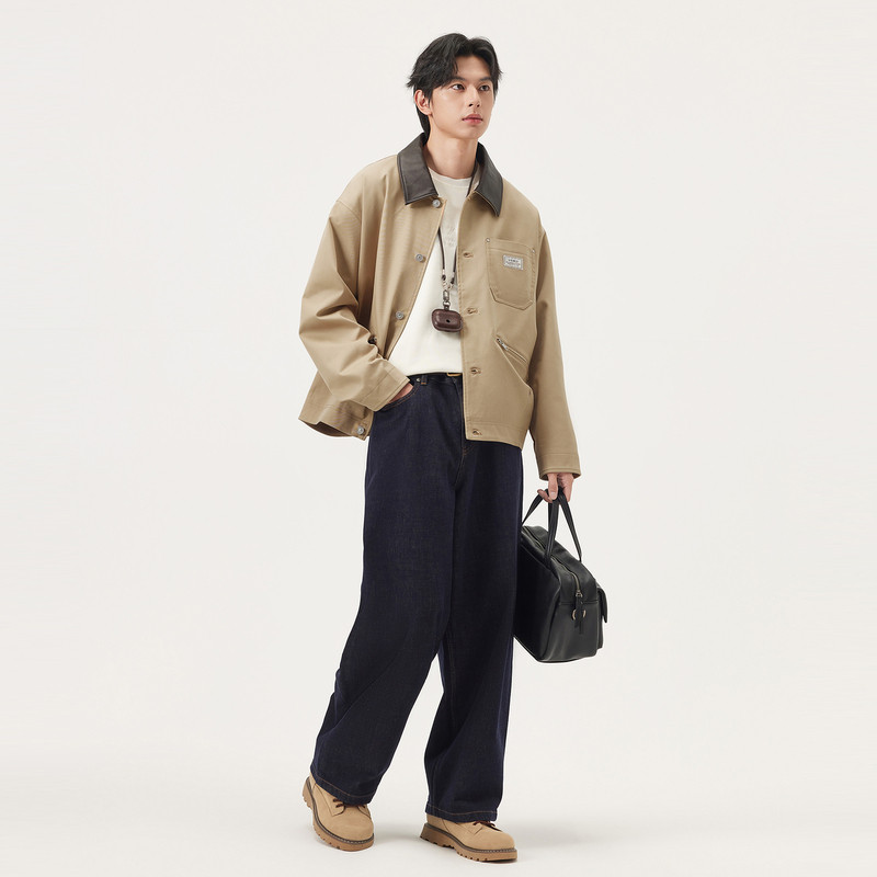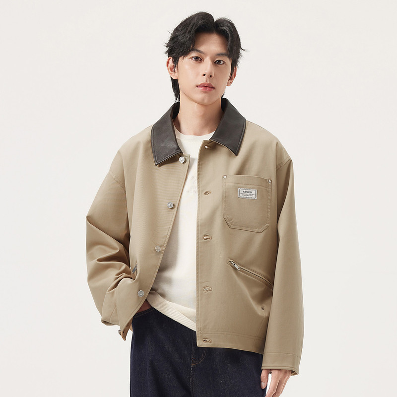 春秋热销 撞色领口宽松翻领夹克外套男 gxg.jeans男装 卡其色工装