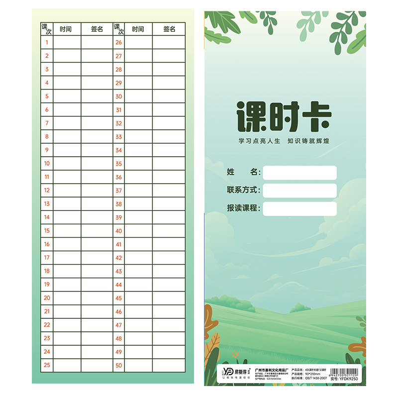 易复得纸品50节课时签到卡贵宾私教签课卡培训班学员出勤表登记本健身瑜伽舞蹈课时记录划消课卡