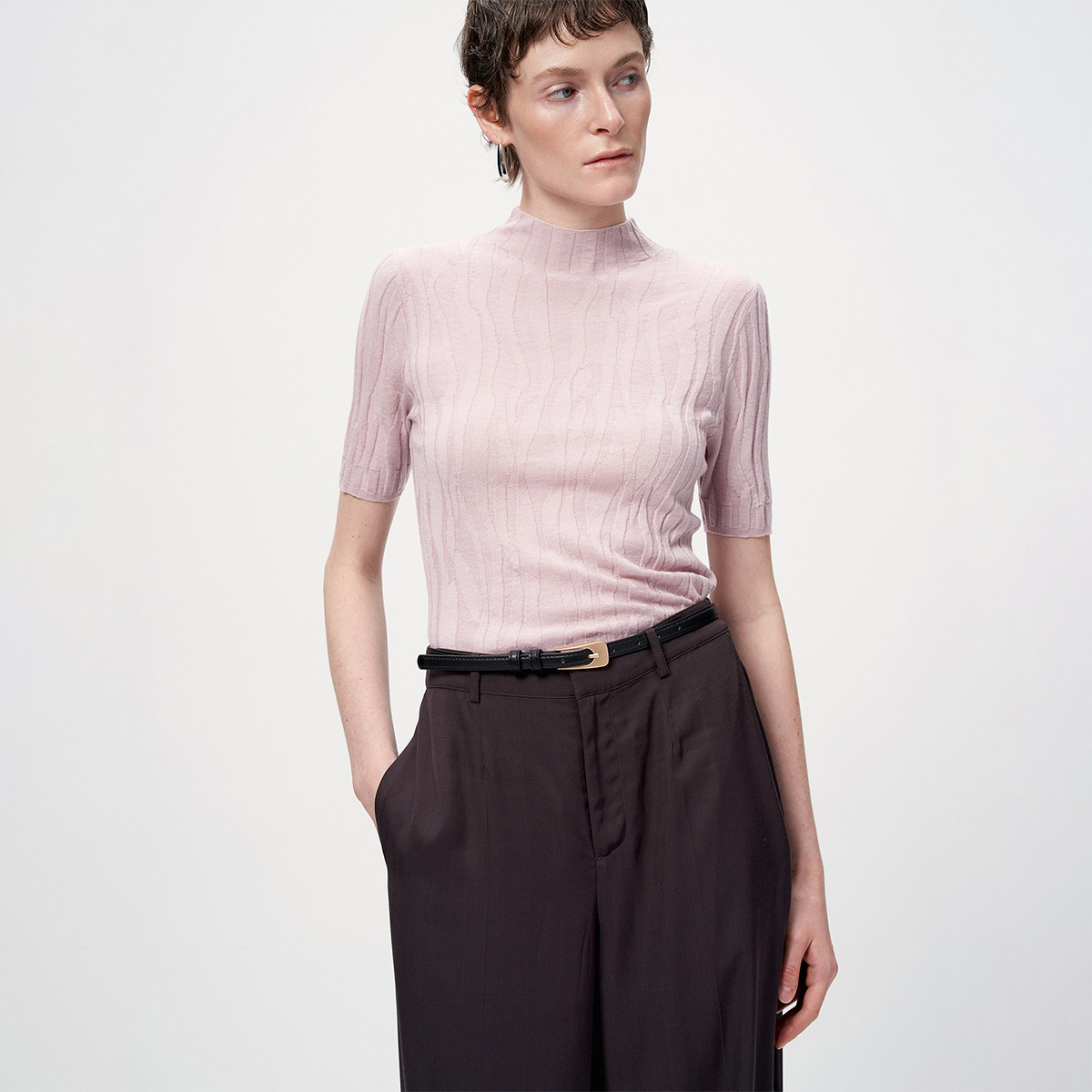 绵羊毛针织上衣 简约百搭肌理感小高领中袖 BLUE轻奢优雅女装