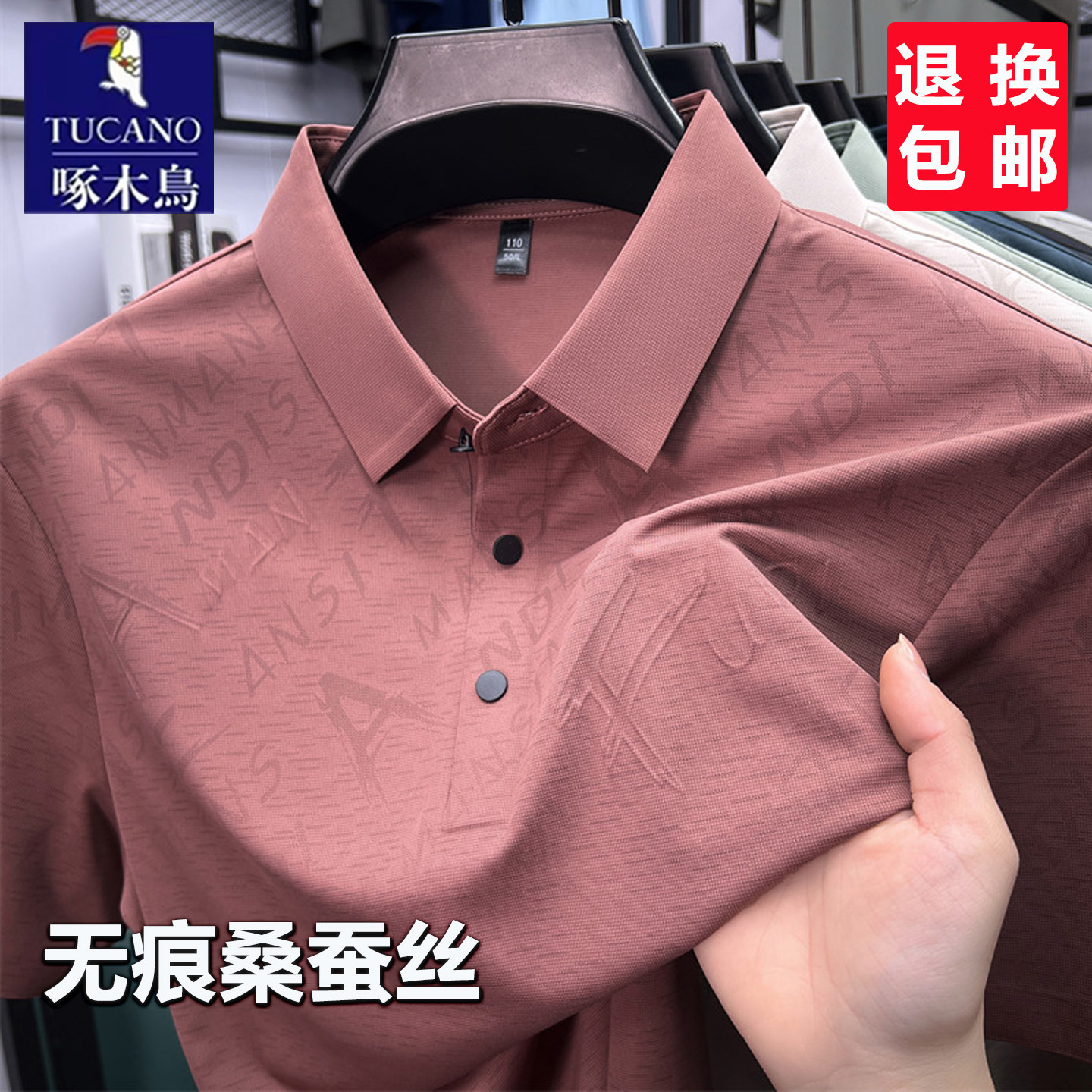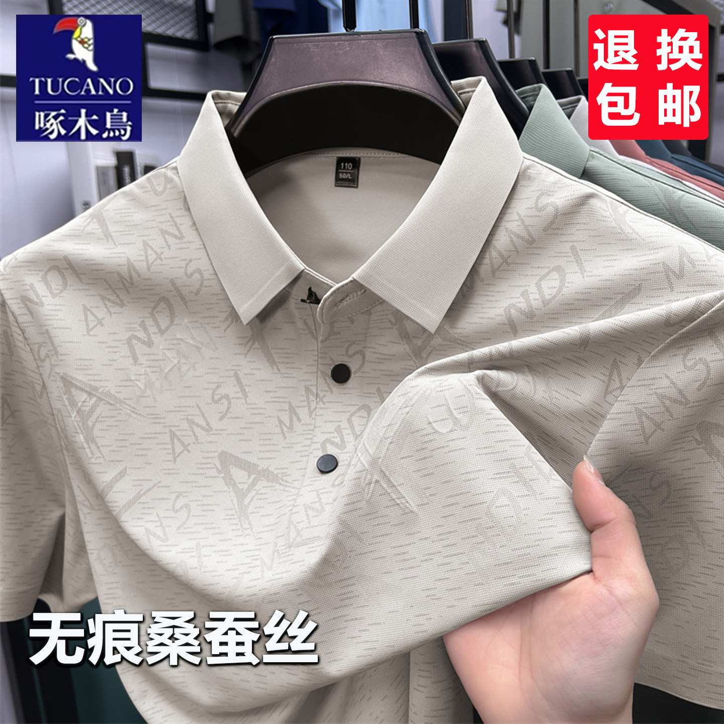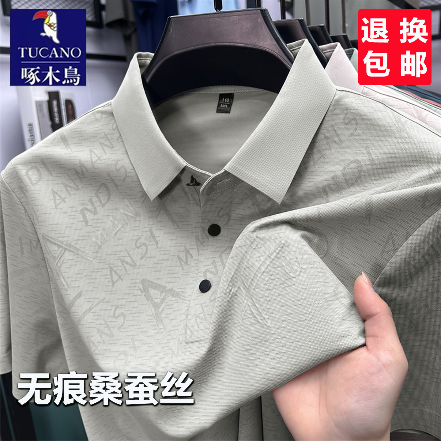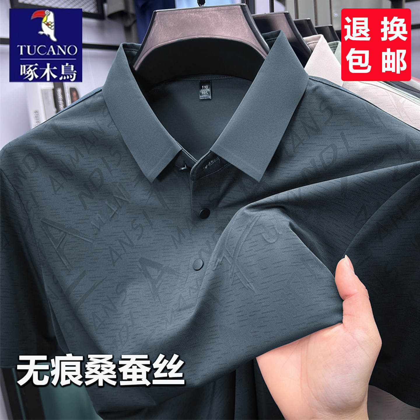 桑蚕丝短袖 polo衫 t恤2026夏季 冰丝免烫体恤爸爸装 新款 啄木鸟男士