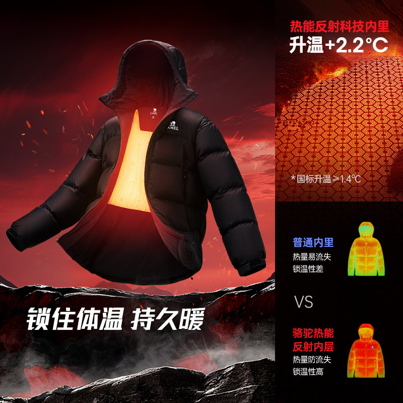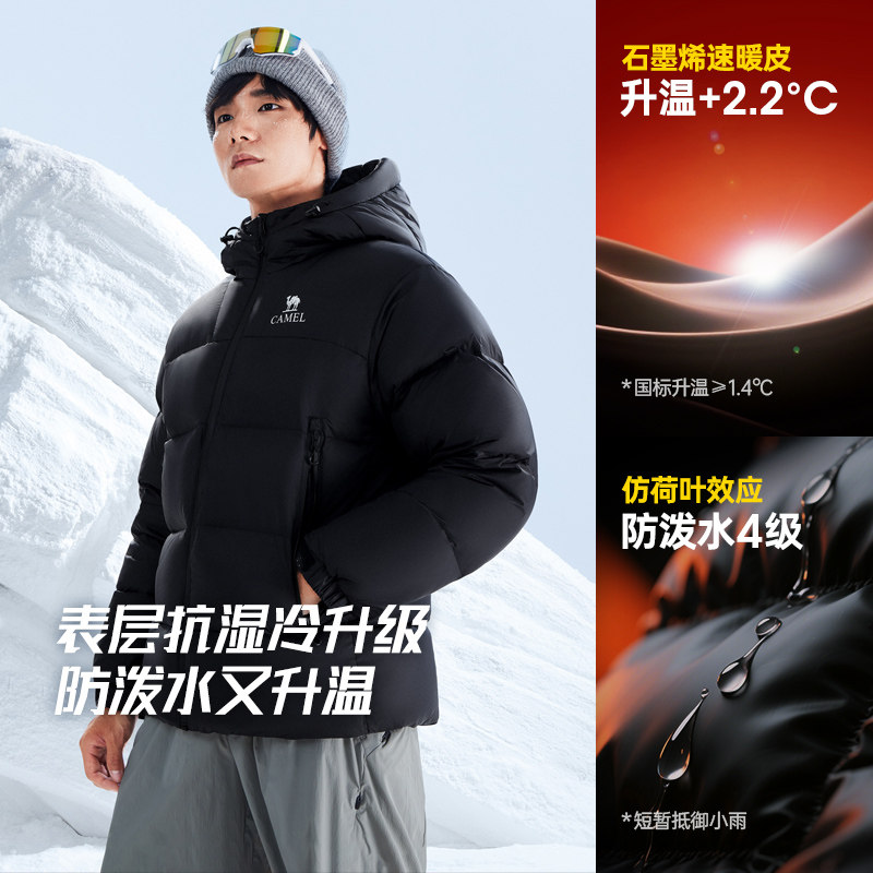 骆驼火山羽绒服2.0秋冬2025新款 90绒 户外加厚保暖防寒外套男装